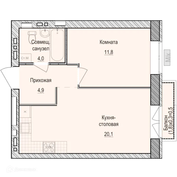 1 комн. квартира в Ижевске в ипотеку от 26 420 руб/месяц